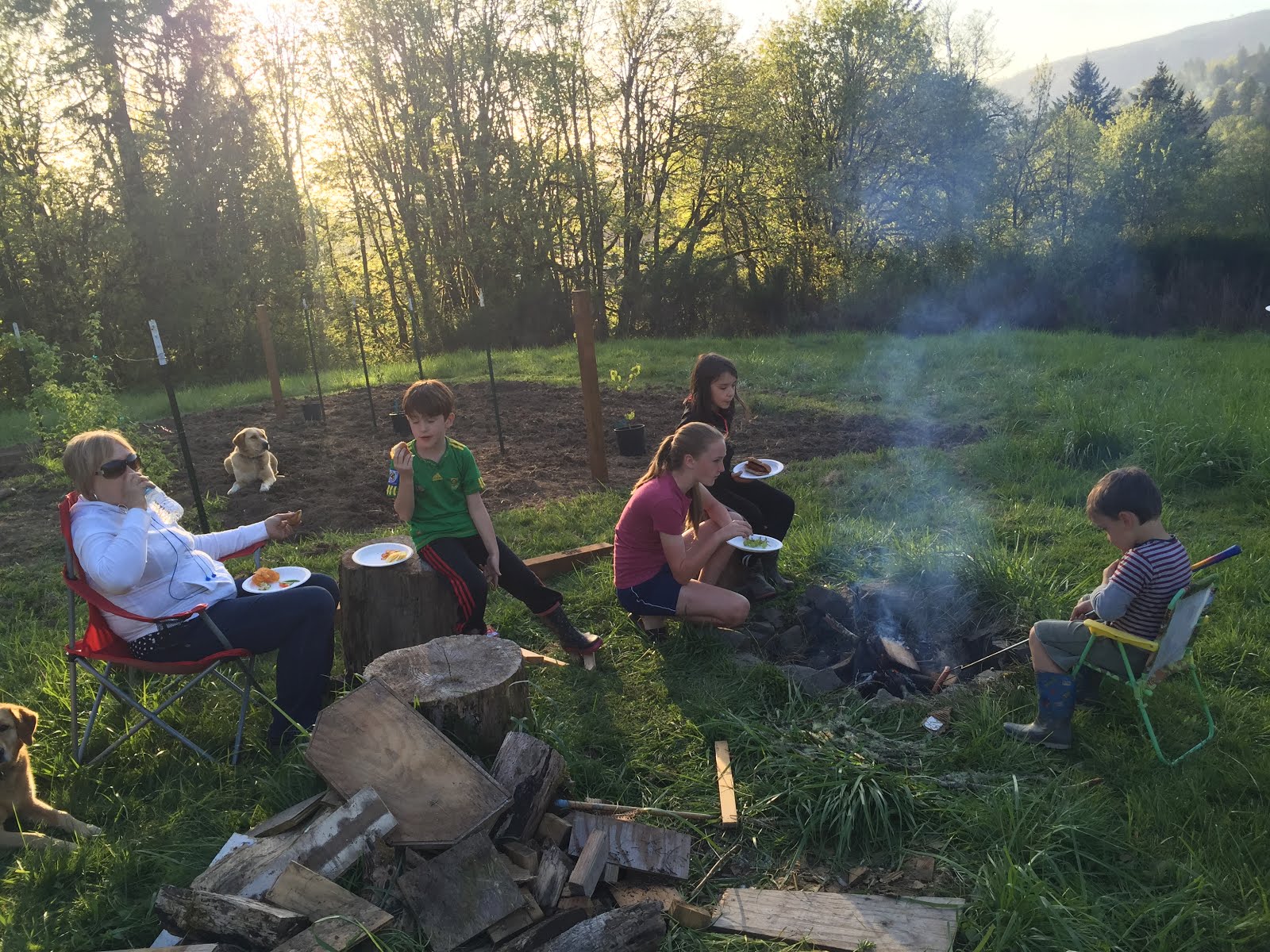 We had a cookout and also tried burning some of the old corn stalks from last year. They didn't burn very well, so we will have to get some wood to add to it and try again later.